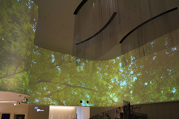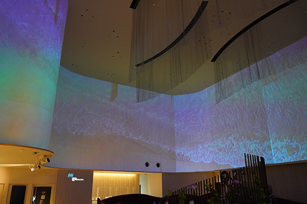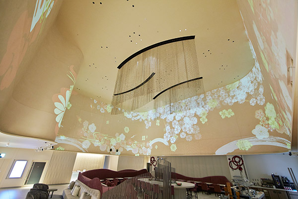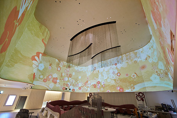 ディナータイムは、吹き抜け360度にプロジェクションマッピングを投影しております。